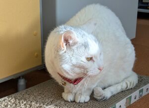 カメラを向けられると目を閉じてしまうシロですが、、帽子もお似合いです。
